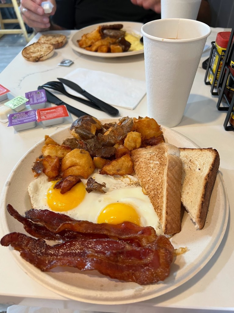 The next day, we got up and walked to the great little breakfast place that is near the hotel called the South Country Cafe. They have great breakfast and coffee. Yes, we need coffee.