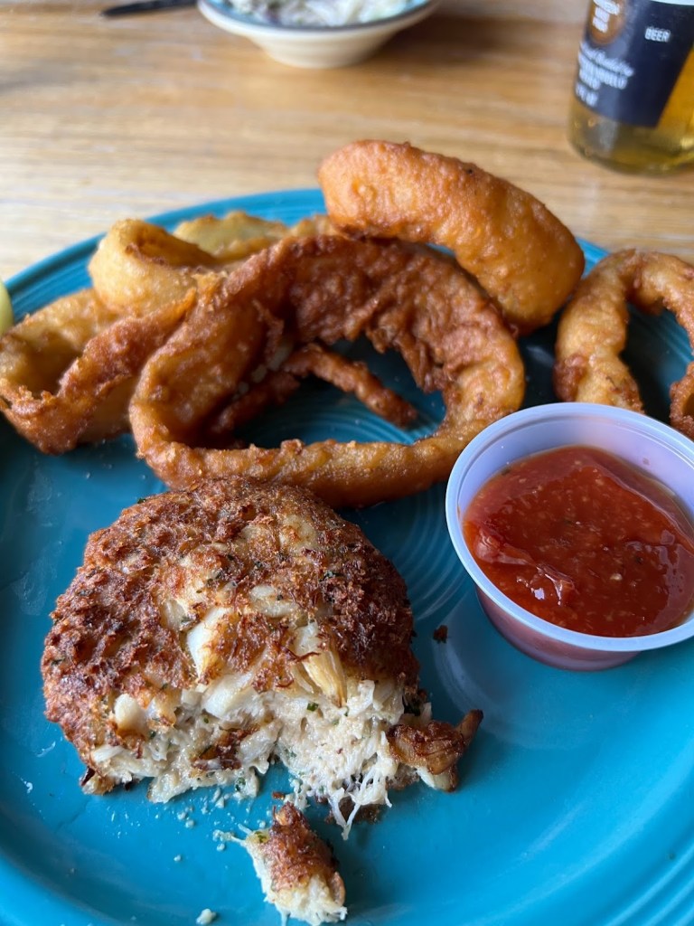 We took a break from the heat in the air conditioned boater’s lounge and had some lunch before we tackled the other side of the boat. That was about all we got done today and then we walked to the Happy Harbor Restaurant which is about halfway to the hotel. I, of course, got a crab cake. I know some of you heard me say that I was actually a bit tired of seafood at the end of our time in the Chesapeake before we headed ome. Well, after 2 months at home, I missed the seafood. That crab cake tasted delicious!
