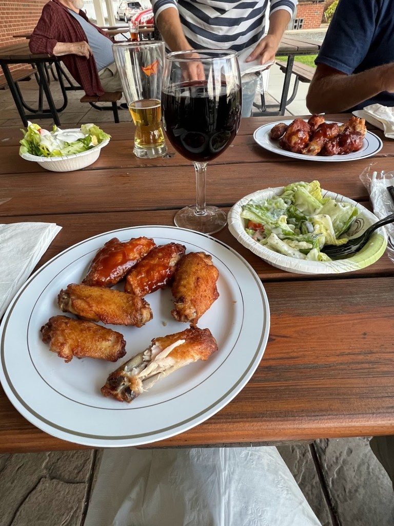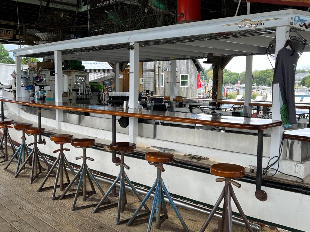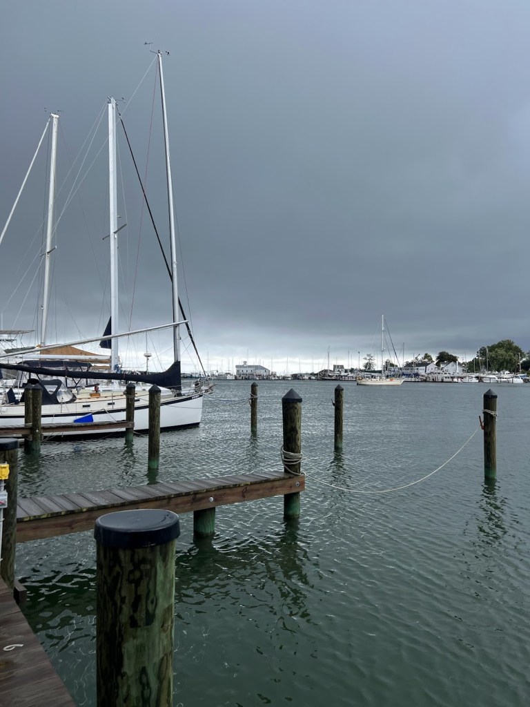 We left Rock Hall on the morning of Wednesday September 28th around 8 am. The winds were 15 – 17 out in the Bay and we were sailing along quite nicely as we skirted under the Bay Bridge. I never tire of being in awe of the bridge as we head under it. Once we were through the wind died down and we were forced to motor sail and then just motor the rest of the way to our destination. Initially, we though we would head to South Creek to anchor, however we were concerned with the timing of Ian making it’s way up the coast and getting stuck at anchor for several days with high winds. We opted instead to head all the way to Solomon’s Island, about 50 miles. We were pushing to make it to Solomon’s before dark. We pulled into Solomon’s about 4:30 or so and we are staying at Solomon’s Island Yacht Club. Butch was waiting for us at the dock to help us in. Butch told us they were having a wing dinner tonight at the yacht club and we were free to join them. The wings were delicious!