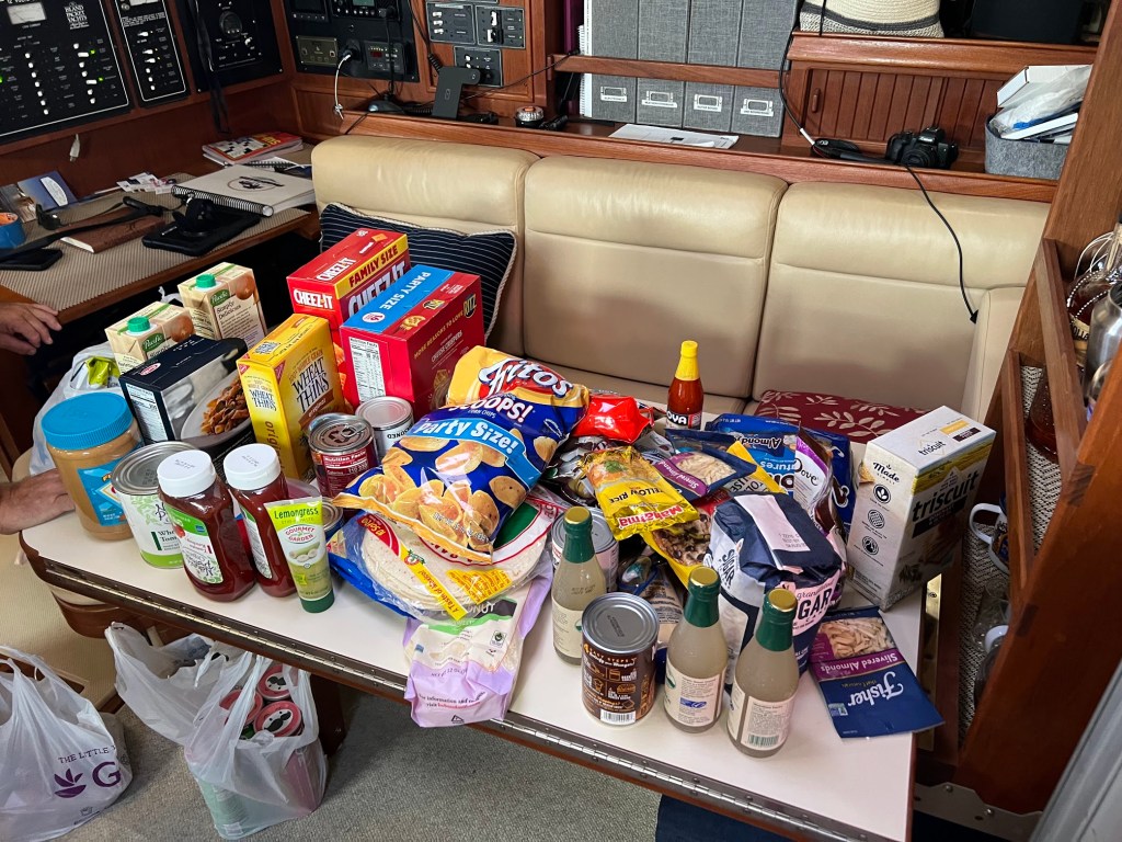 Everything on a boat takes twice as long as doing the same job at home and grocery shopping is no exception. On a boat, it involves 1) inventorying what I have and compiling a list before I go. 2) Google to see where to nearest grocery store is to us. 3) Find an uber/lyft to take us to the store. 4) Shop 5) Unload all our groceries from the uber into a dock cart to wheel it down the dock to the boat. 6) Unload the dock cart into the cockpit of the boat 7) Move the groceries from the cockpit to down below in the boat 8) Sort the groceries based on where they go, fridge stuff, freezer stuff, pantry stuff 9) Get the fridge stuff in there before it gets too warm 10) Repackage all the freezer stuff and vacuum seal all the meat and freezer items so they stay fresh longer and don’t get freezer burn 11) Put away all the pantry items 12) Check freezer every couple hours and rotate items to ensure everything freezes. This process literally takes all day!