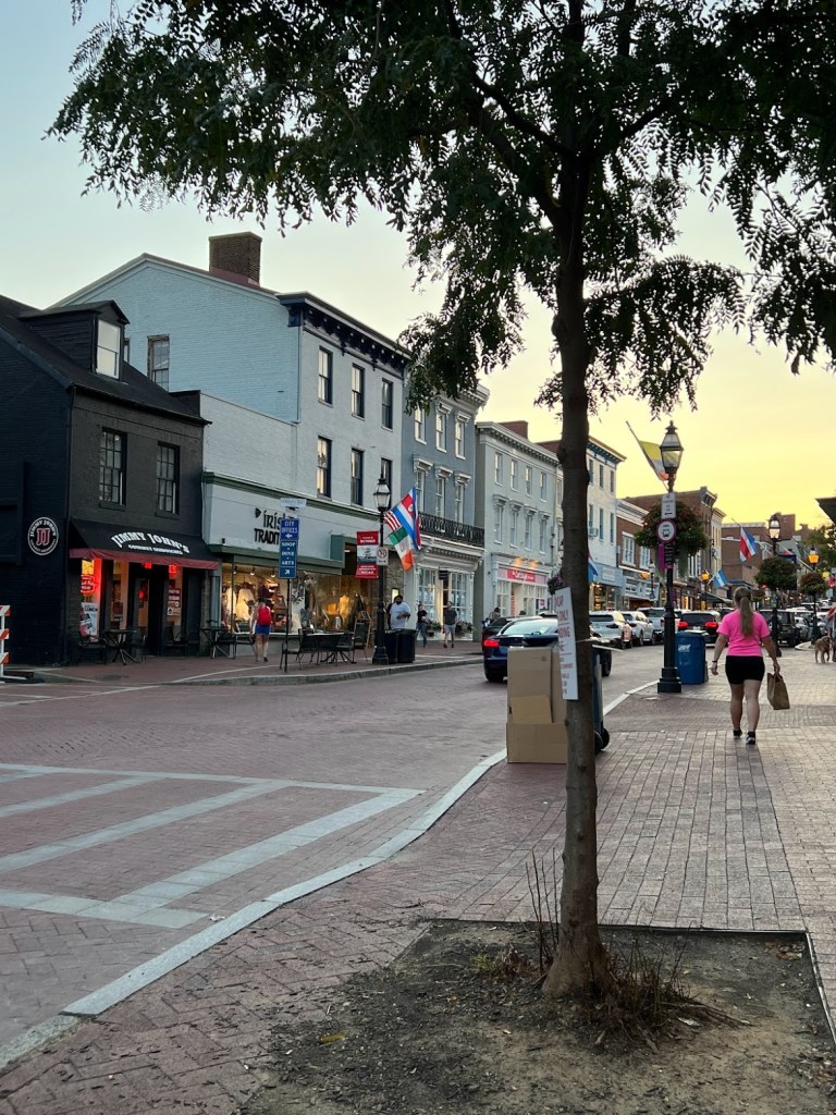 Then we walked to downtown Annapolis for our last night in town, as we are planning to leave tomorrow morning for Rock Hall. We hopped aboard a free shuttle bus in town that takes us to another area of Annapolis that has some cool shops and restaurants. Evelyn knew about this great little Italian restaurant up here so we ate dinner at this great place that had great food! And then we walked back to the dinghy and got dropped off by the Chart House across the creek and Mark and I walked the 3 – 4 blocks back to the boat for the night.