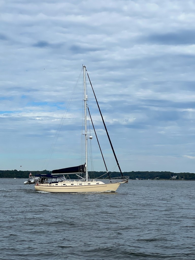 As we are troubleshooting all the things that could be going on, we were fortunate to be traveling in the company of our friends Ed and Evelyn aboard Dutch Wind. So, we consulted Ed about what he thought and what we might try. We were also in contact with another Island Packet owner aboard Vagari Mari who was sailing down the bay near us as well. I also contacted another Island Packet friend Ty, who has his boat in Deltaville where we are headed to ask about mechanics in the area in case we need some help when we get to Deltaville. Ty was able to ask a few of his friends in Deltaville and soon we had 3 – 4 additional people added to our group chat that we had never met offering advice and assistance. The community of boaters is amazing! We felt extremely supported and never felt like we were alone in our struggles.