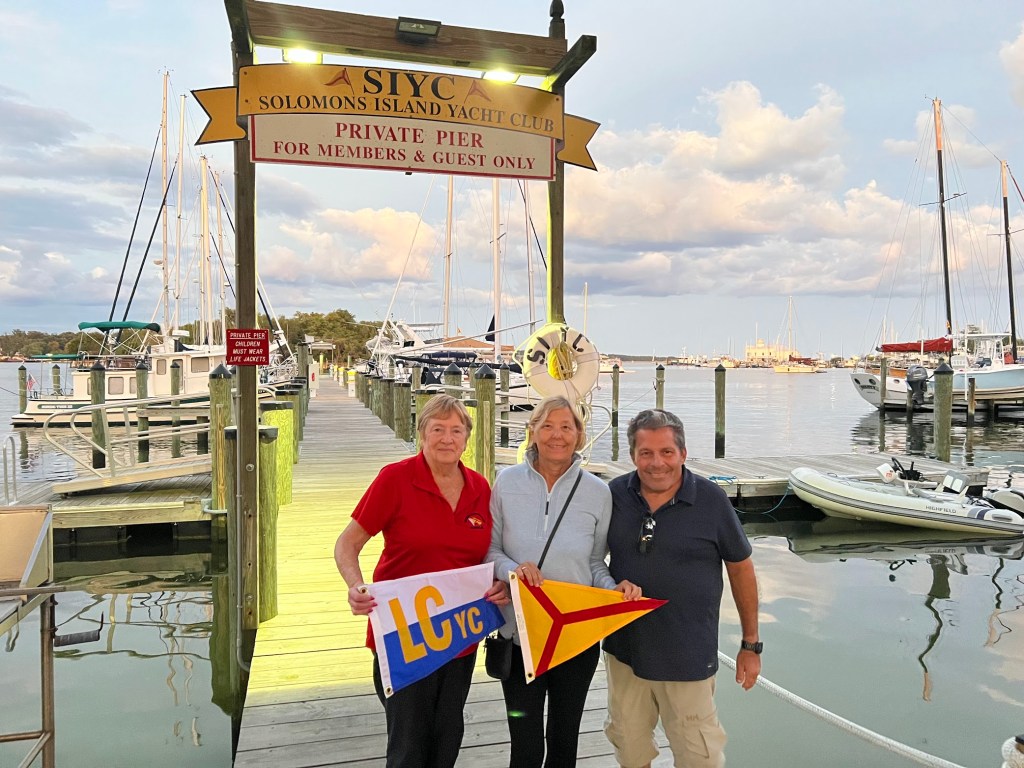 Solomon’s Island Yacht Club is one of the oldest yacht clubs in the Chesapeake Bay and was founded in 1937. They welcome transients and members of other yacht clubs. SIYC also boasts the largest collection of yacht club burgees (flags) in the world. They are working on being recognized by the Guiness Book of World Records. Since Mark and I are members of Lake City Yacht Club and we happen to have a LCYC burgee on our boat, we exchanged our LCYC burgee for their SIYC burgee so that we could contribute to their collection. They didn’t have a Lake City Yacht Club burgee yet. It is a yachting tradition to exchange burgees when visiting other yacht clubs.