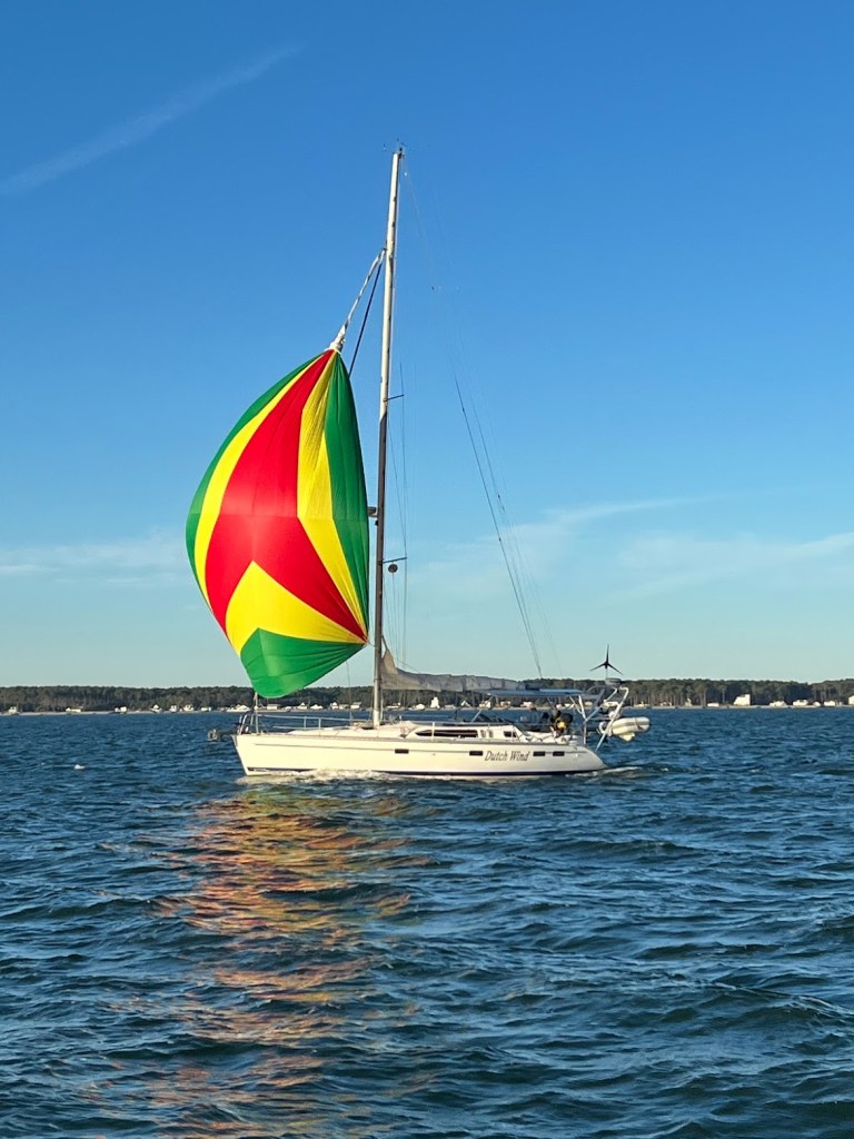 We got a few nice shots while we were underway. We are traveling with our friends Ed and Evelyn aboard Dutch Wind. Here is their boat flying their spinnaker.
