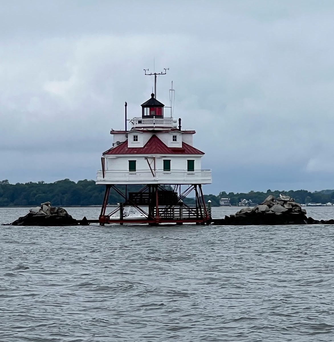 We left Rock Hall on the morning of Wednesday September 28th around 8 am. The winds were 15 – 17 out in the Bay and we were sailing along quite nicely as we skirted under the Bay Bridge. I never tire of being in awe of the bridge as we head under it. Once we were through the wind died down and we were forced to motor sail and then just motor the rest of the way to our destination. Initially, we though we would head to South Creek to anchor, however we were concerned with the timing of Ian making it’s way up the coast and getting stuck at anchor for several days with high winds. We opted instead to head all the way to Solomon’s Island, about 50 miles. We were pushing to make it to Solomon’s before dark. We pulled into Solomon’s about 4:30 or so and we are staying at Solomon’s Island Yacht Club. Butch was waiting for us at the dock to help us in. Butch told us they were having a wing dinner tonight at the yacht club and we were free to join them. The wings were delicious!