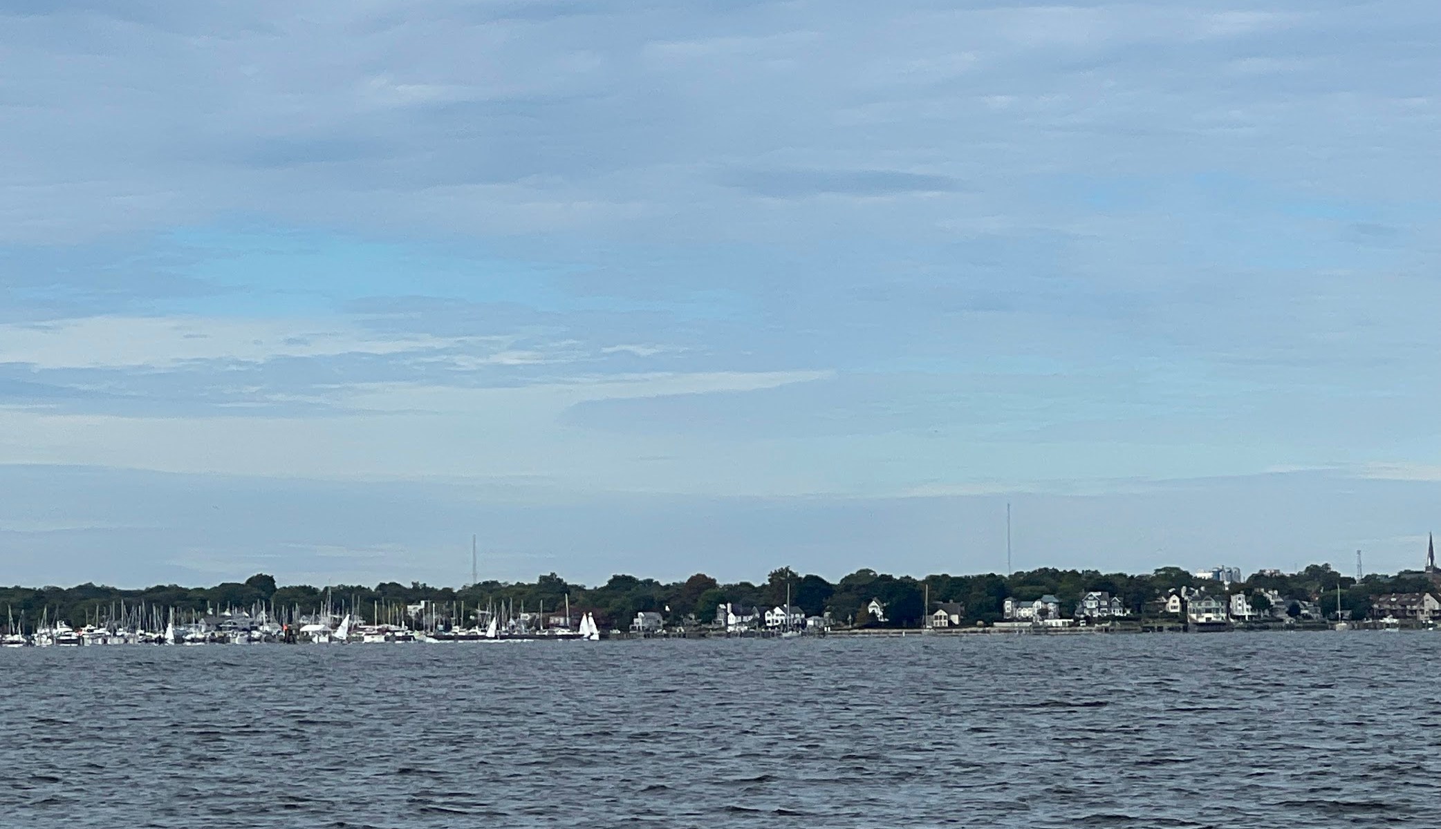 We finally left Solomon’s after being there a week due to Hurricane Ian. We were so tired of sitting at the dock that we left in still some unsettled conditions. It was still raining this morning, but the winds were dying down. Winds should be about 20 – 25 knots today on the Chesapeake but they will be mostly behind us, so it should be a great sail down the bay. It was still cold, rainy and miserable when we left the dock and I wasn’t too sure I really wanted to venture out today. Here is a photo shortly after leaving the dock.