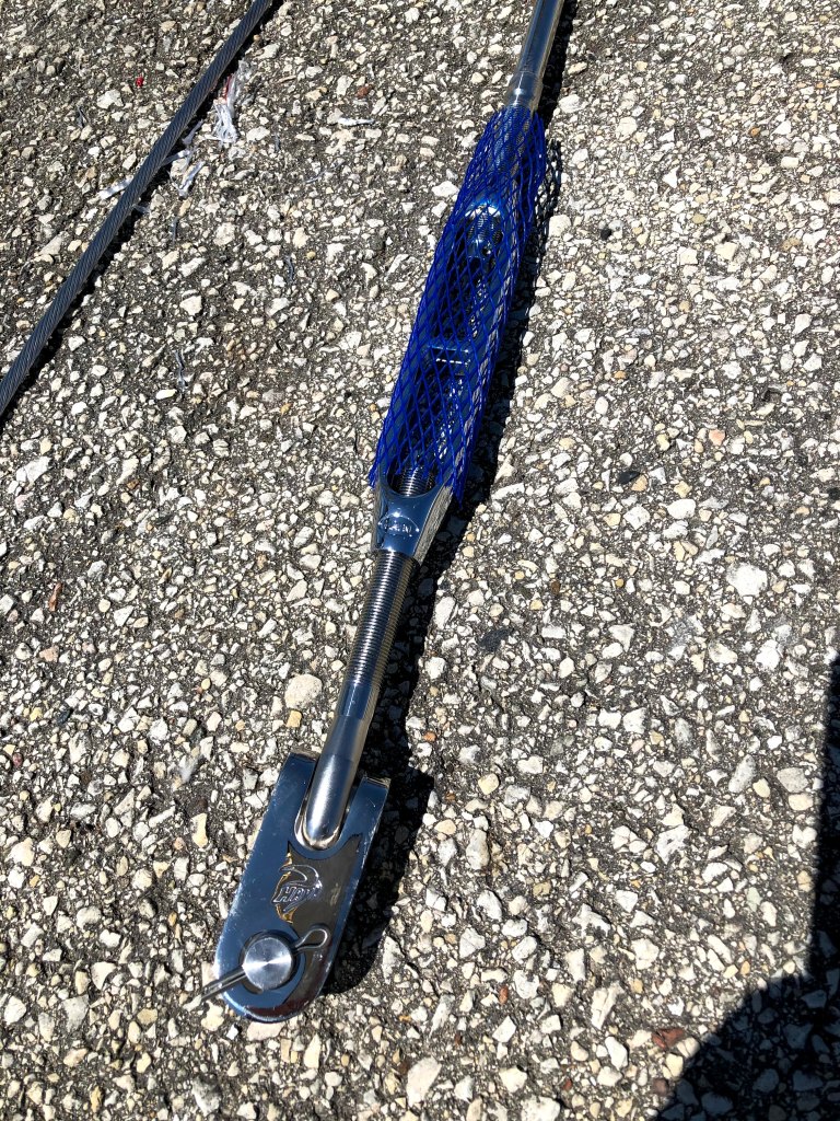 Now many of you might think that is enough for one day, however you might have noticed from the pictures and videos that our sailboat is missing something. That’s right, our mast is not yet on the boat. When we got into the marina we pulled the boat over to their mast raising area so we could do just that. Over the winter, we had the marina install on new standing rigging. That’s those wires that hold the mast up. Now for most of you that might seems as exciting as getting a new hot water heater in your house, but for us this is like Painkiller get all new shiny jewelry. Not to mention the huge safety issue of keeping the mast up. Have I ever told you there are only 3 rules to sailing? No? Well…rule #1 keep the water on the outside (we checked that out when the boat was put in the water); rule #2 keep the people on the inside (so far so good) and rule #3 keep that big stick thing up in the air (that’s what that new rigging is for). See how shiny?