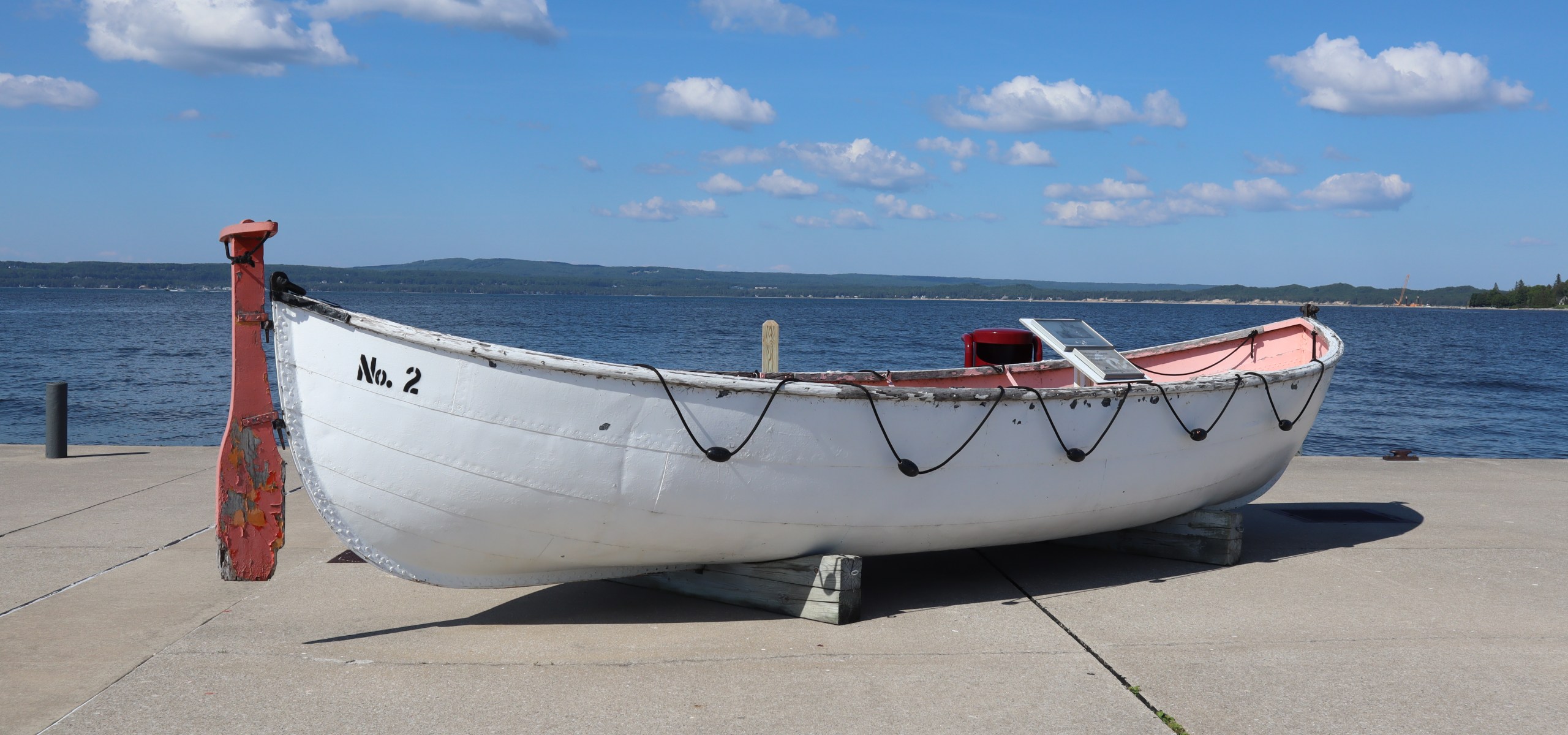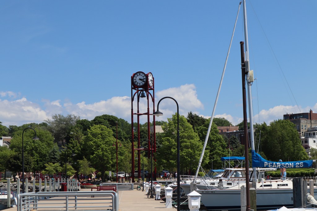 We arrived in Petoskey around 2 pm. The marina in Petoskey is fairly affected by the high water in Lake Michigan. You can see how low the docks are to the water in this photo. Anytime a boat came in and created any sort of wake the water would wash over the dock next to the boat. All along the west coast of Lake Michigan, as we would call various marinas to inquire about a dock for the night, we would ask about the condition of the docks and the high water. My rule of thumb was: Can I walk on the dock with my socks on and not get them wet? Petoskey is the first marina we have encountered so far, that I can safely say, yes, I will get my socks wet.
