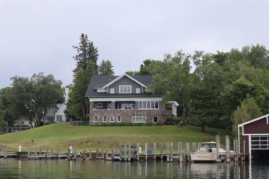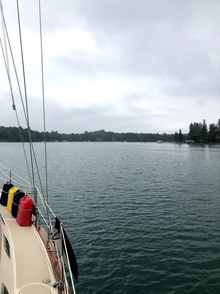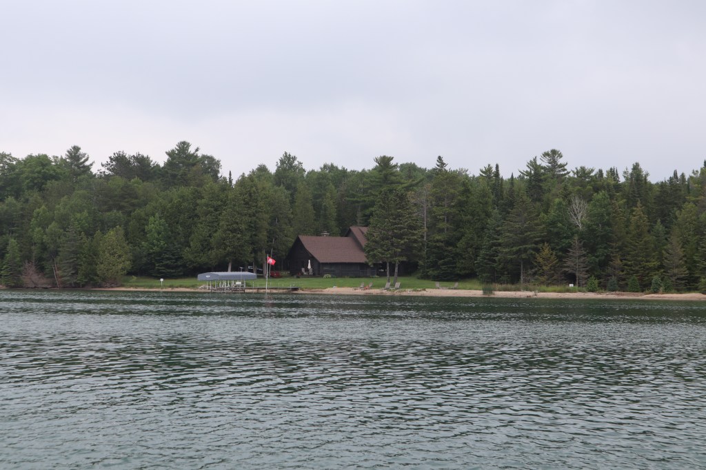 We really have no idea anymore what day it is, so we gave up and now call everyday Blursday. After we left the Charlevoix marina we headed east into Lake Charlevoix to anchor for several days in Oyster Bay. It’s a very protected area with nice lake homes dotting the shores and wooded with pine trees. It feels like being up north somewhere in Minnesota. In this area of the lake there is no place to go ashore since it is all private homes.