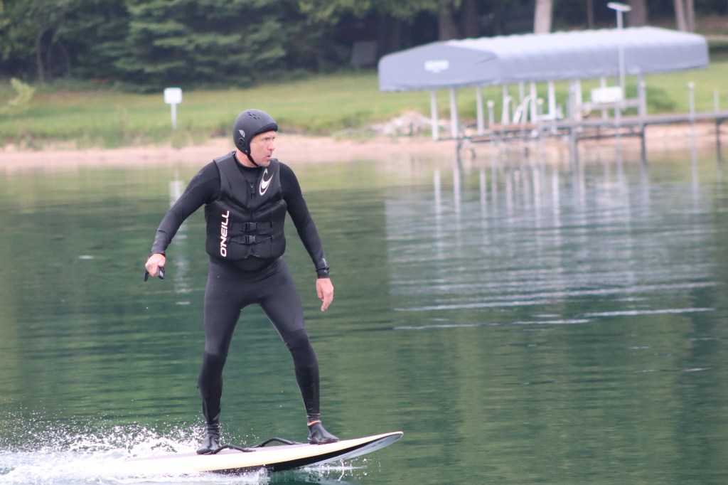 2. The boards are called efoils, and when they get going fast enough, they do indeed foil. Much quieter than jet skis, but you need good balance and a big checkbook ($8-12K each). And no cupholders!
