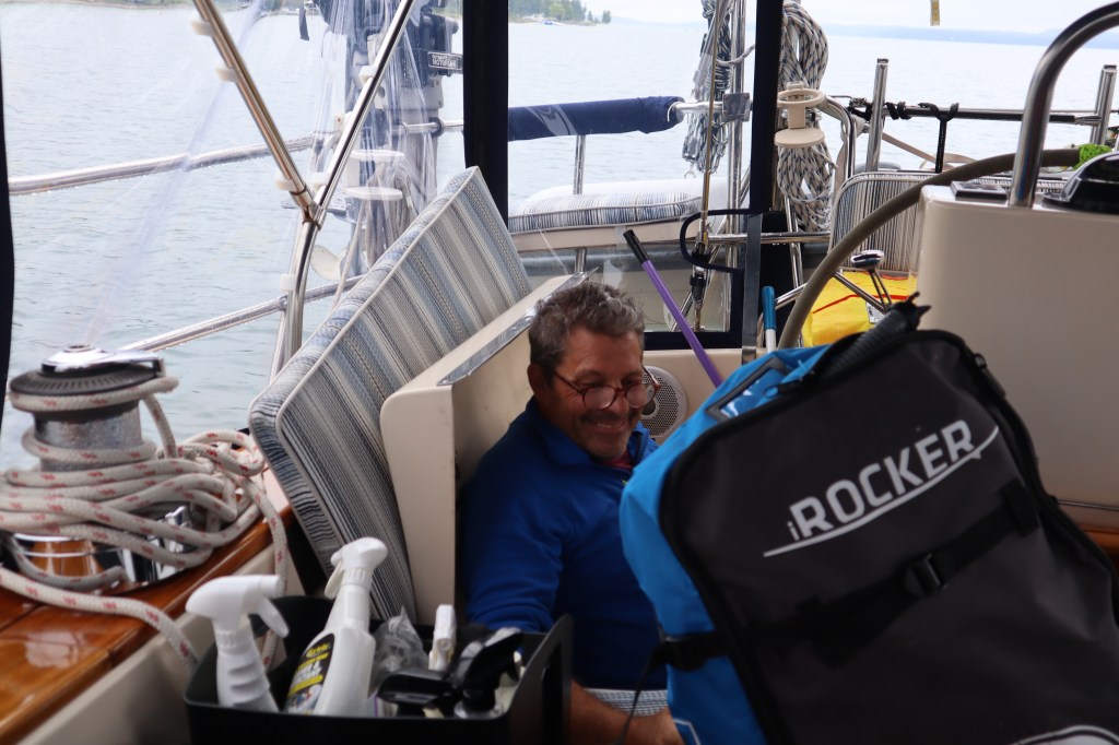 We spent 3 days looking for things to keep us busy on the boat in the rain. I must say we very much appreciate the enclosure for the cockpit as it really gives us a whole additional room in the boat and allows us to sit in the cockpit even while it is raining. Otherwise we would have to sit down below in the boat and really can’t see what is happening outside.