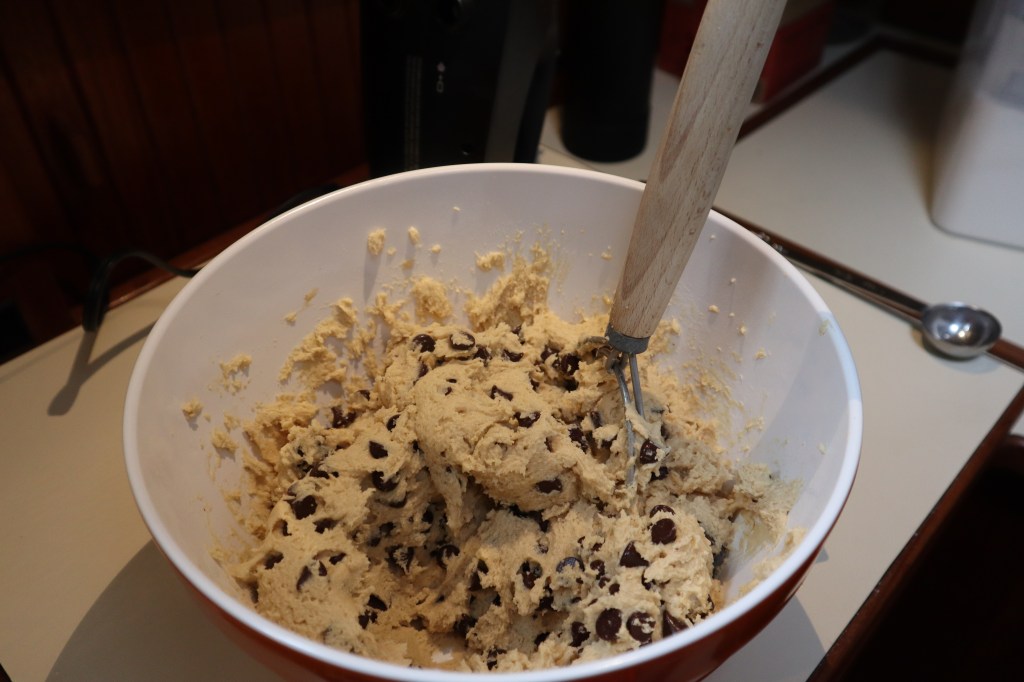I also made some chocolate chip cookies one afternoon. I was hoping the dry heat from the oven would help get rid of the dampness that has over taken the boat and everything we own. The cookies were delicious!
