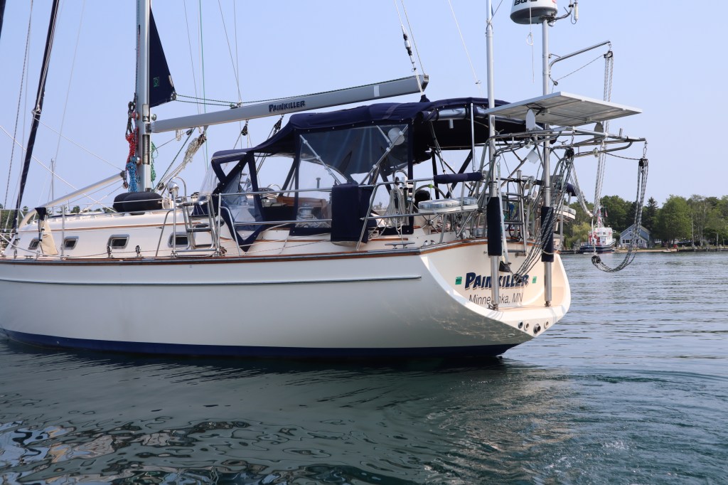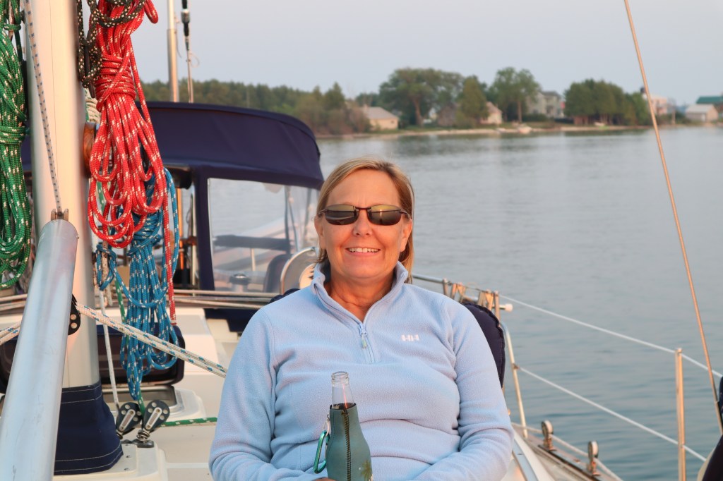 The people in that boat pictured in the sunset, got in their dinghy shortly after we took these photos, so we waved them over to let them know we took some cool shots of their boat with the sunset and we could send the photos to them. As they pull up in their dinghy, flashes of recognition happen with both of us. This is Jordan and Mary Beth. We met them a year ago on Mackinac Island during our stay there and here they are anchored in front of us. Reconnecting, questions and answers ensued which then led to a sunset dinghy ride and concluded with rum aboard Painkiller. Fun night!