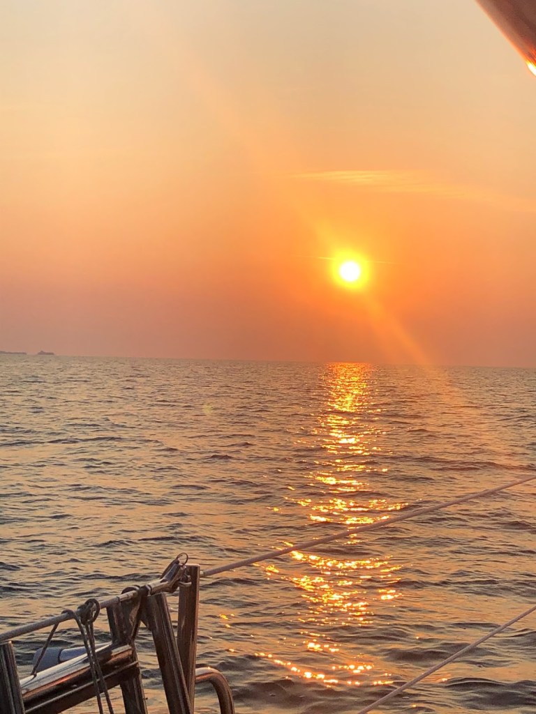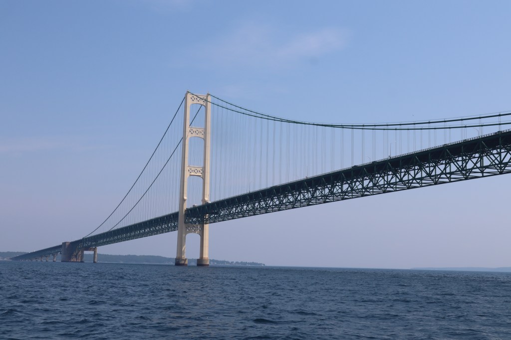 It was a beautiful wind day today with winds directly behind us at about 10 knots. It is days like today that we wish we had a spinnaker sail. The other highlight of this passage was crossing under the Mackinaw Bridge and entering Lake Huron, our second Great Lake.