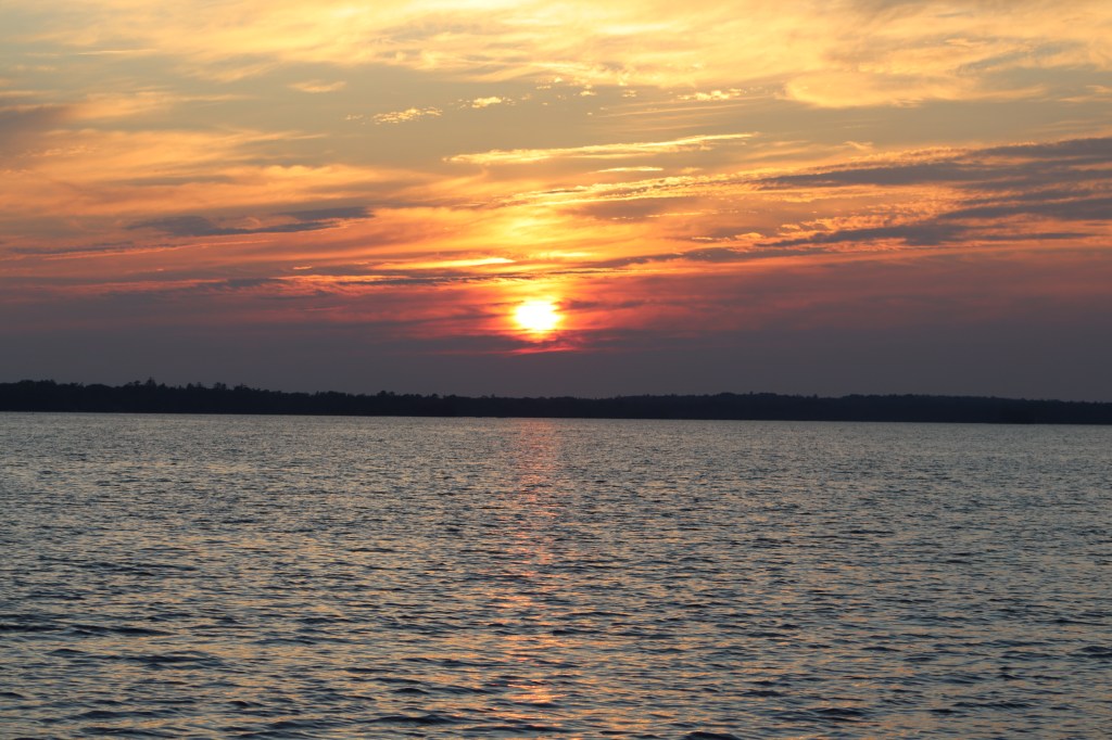 The next morning the fog had cleared to a beautiful sunny day with increasing winds. Today we would leave our secluded anchorage and head back to St Ignace as Camille will be departing us the next day to head home.