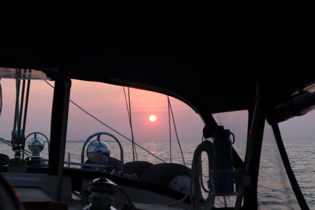 Let’s back up a bit. We left Put-in-Bay around 6 am since we had a little over 50 miles to go today. It was a glorious morning and the sunrise was spectacular today.