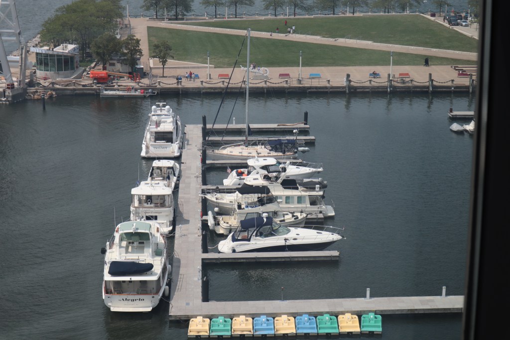 There’s our boat down there from one of the windows in the Rock n Roll Hall of Fame