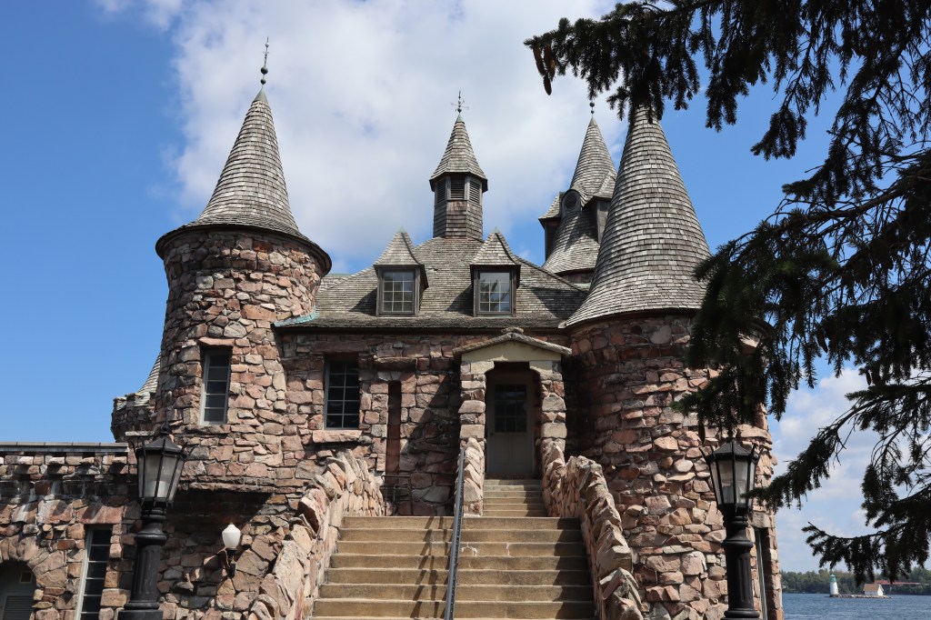 One day we went to Alexandria Bay which is up by the Thousand Islands area of New York by the St Lawrence River. We took a ferry over to Boldt Castle and took a tour. Boldt Castle was constructed as a summer home in 1900 by millionaire hotel magnate George Boldt for his beloved wife Louise. Mrs. Boldt died suddenly just months before the castle was completed. George was inconsolable and immediately stopped construction and the property was vacant for 70 years. The Thousand Islands Bridge Authority is still actively restoring the property and providing tours. Here are some pics from the castle.