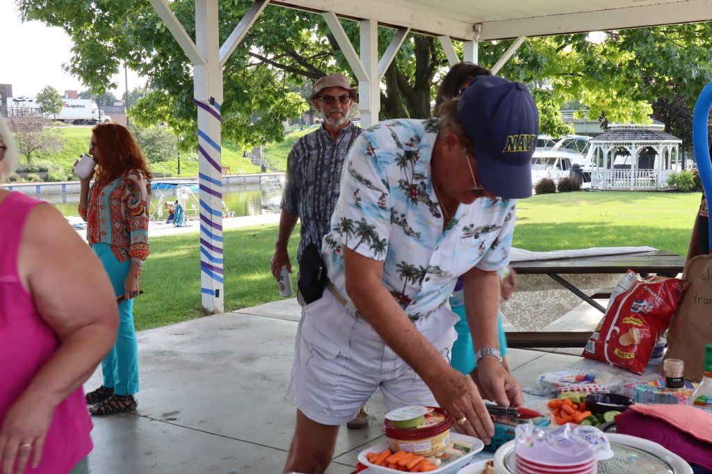 So, what do 14 boats stranded in Newark do? Throw a party of course! We planned a pot luck in the picnic pavilion right by our boats. It was complete with decorations, party favors, lots of great food and great company. We dubbed ourselves the “Stranded Boat Club” and everyone got to take a little life ring as a token of our time together.