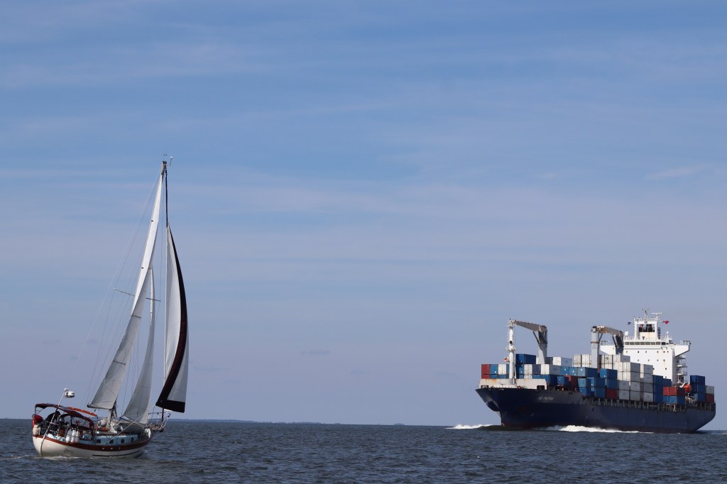 We spent the rest of the day slogging up the Delaware River and fighting the sometimes 2 – 2.5 knot current. We motor sailed the entire day since we needed to motor to keep our speed up. There were a lot of sailboats out on the river today, all heading the same direction we are.