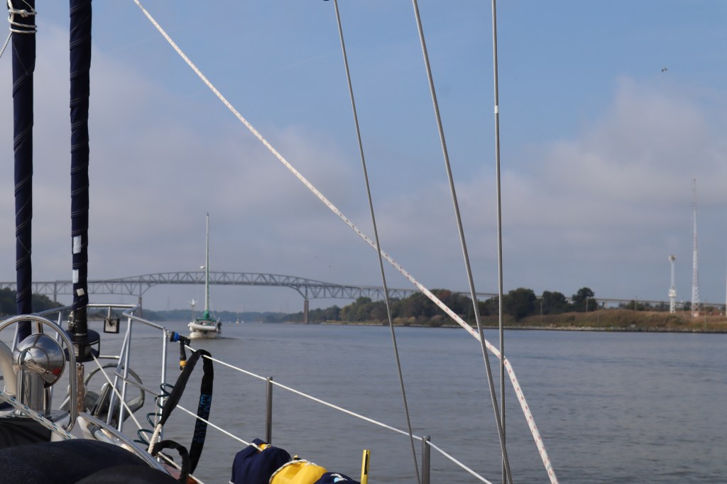 We didn’t have to wait for too long however and the fog had lifted enough for us to leave about 10 am. Other boats also started to leave the anchorage about the same time. Getting ready to go we flipped on the VHF and heard an announcement that the C&D canal was now open for transit. I guess they closed the canal due to the fog, so we couldn’t have gone if we wanted to.