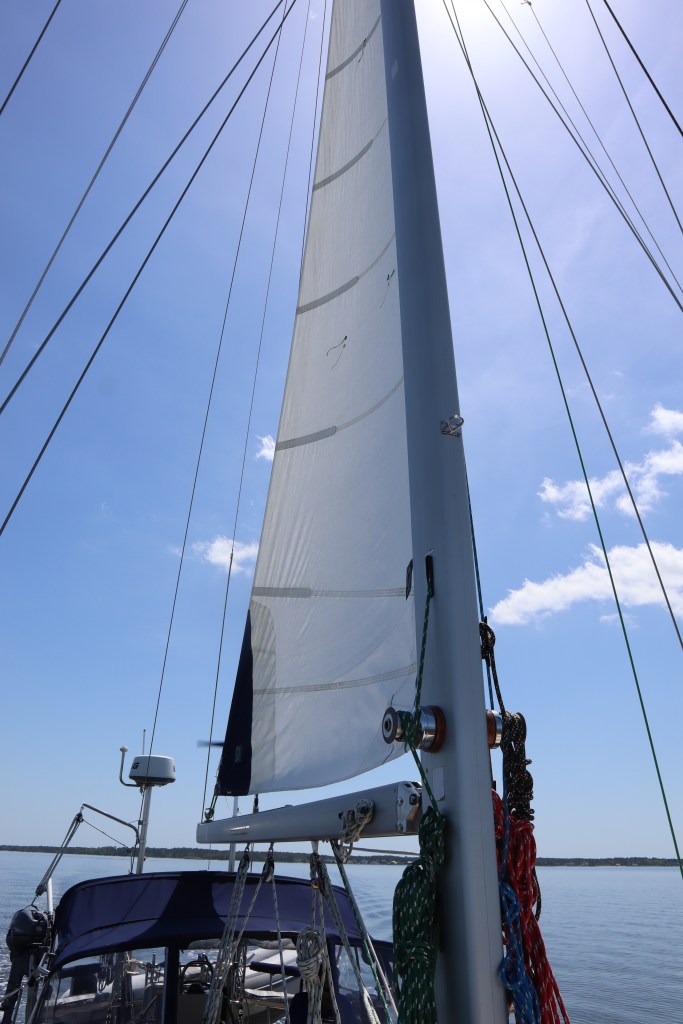 We were up early the next morning in Oriental and left the dock around 7 am. We have about 45 miles to go today to arrive in Belhaven. Coming out of Oriental there is big water in the Neuse River and the Pamlico Sound along our route today, so that means SAILING!!! We haven’t had our sails up in quite sometime as we travelled the skinny parts of the Intercoastal Waterway (ICW). So, we are excited to be able to hoist the sails and let Painkiller stretch her sailing legs.